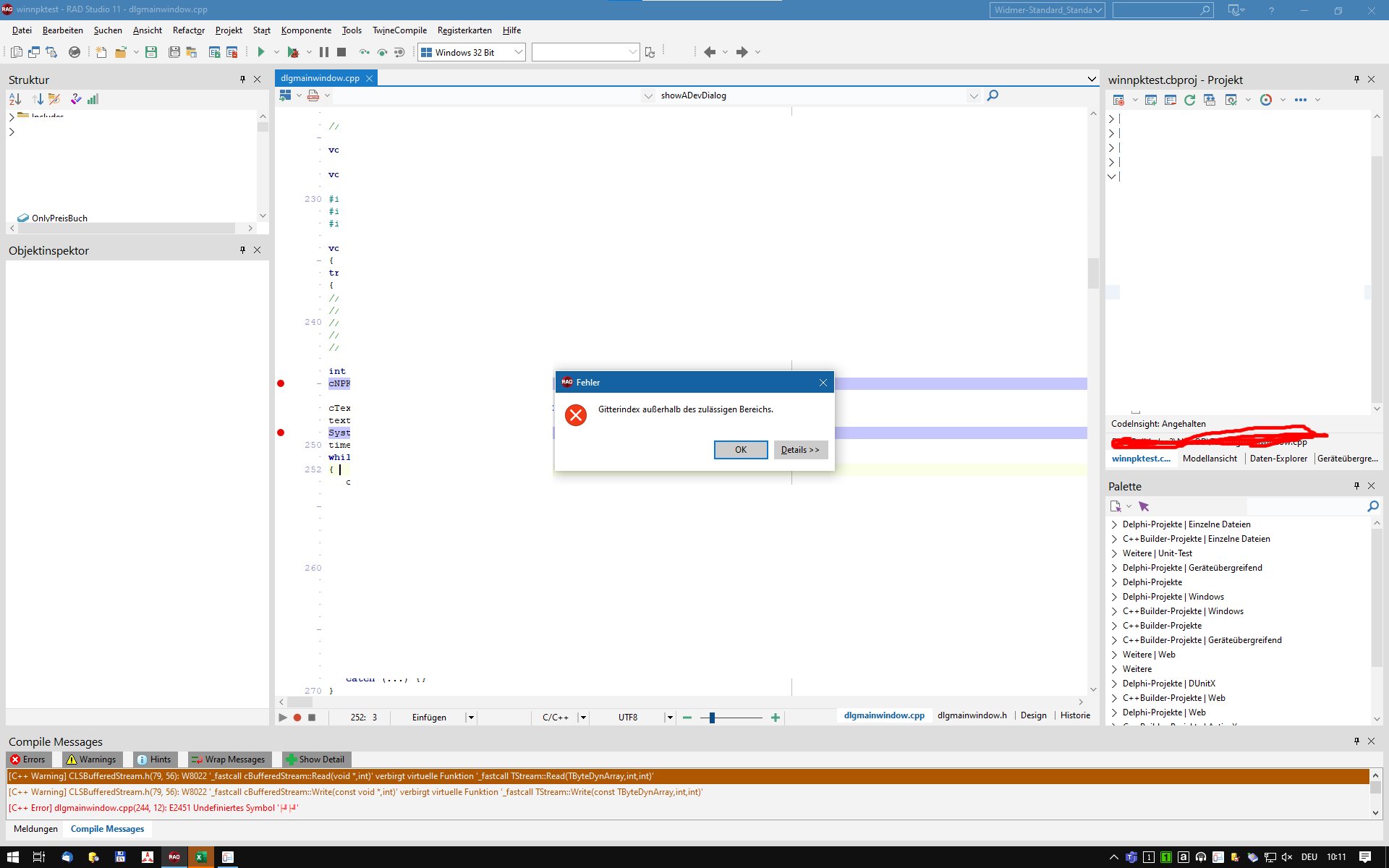When I compile a unit and if there's an error, then TwineCompile 5.5.1 (current GetIt version), seems to be the reason for the following error message thrown by C++ Builder 11.3 (Patch 1):